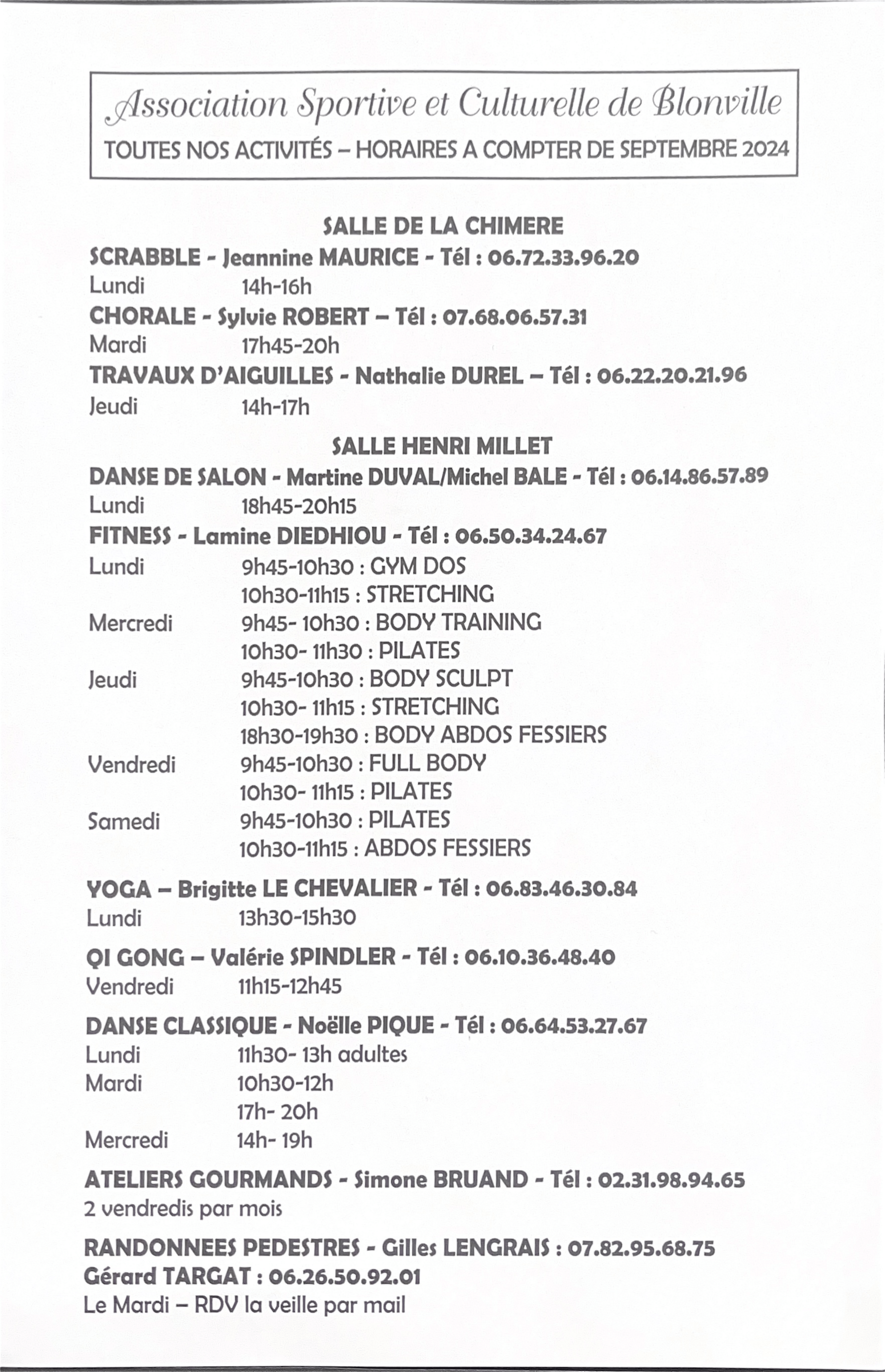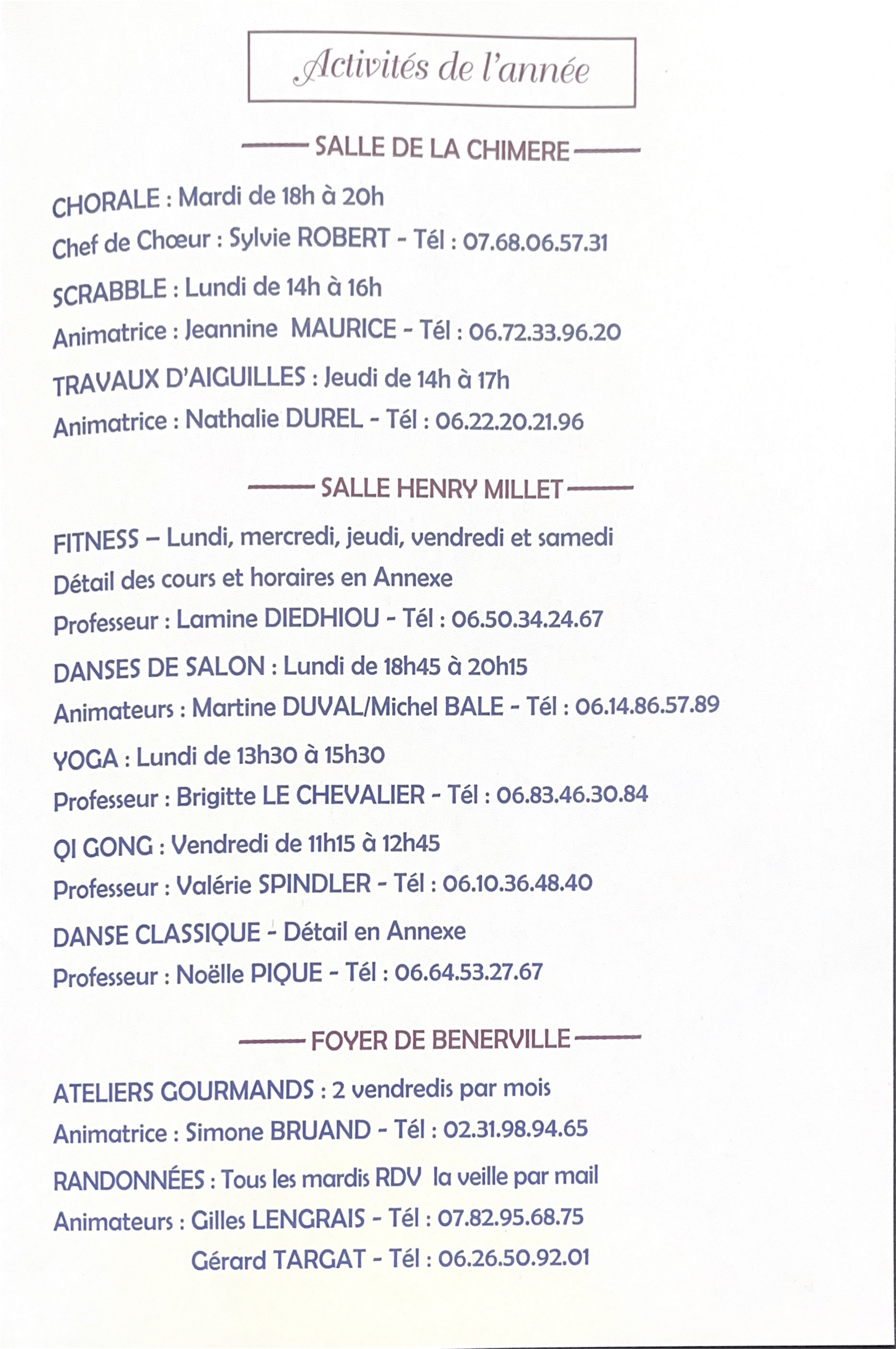 L'association vous propose tout au long de l'année différentes activités : Scrabble, chorale, fitness, Qi Gong, Yoga, Danse de salon, danse classique, randonnées pédestres, ateliers gourmands... etc mais aussi des voyages et des sorties culturelles.