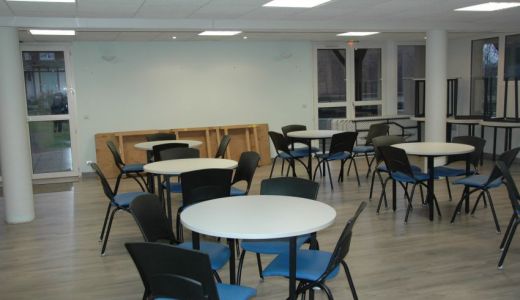 Elle comprend une grande salle, une kitchenette (micro-ondes, cuisinière électrique, réfrigérateur, eau froide, eau chaude), sanitaires, locaux de rangement de matériel.