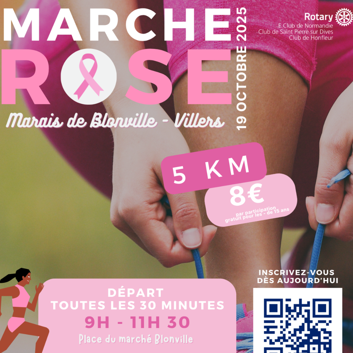 Inscription : 8€ et gratuit - de 15 ans. Sur place le jour de la Marche ou en ligne sur le site Helloasso. + d’infos marcherosemarais14910@gmail.com