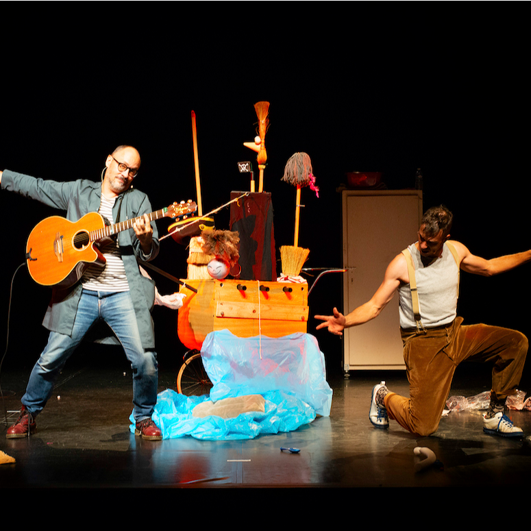 Le public est accueilli par deux hommes d’entretien qui vont transformer leurs accessoires de travail en personnages et navires afin de raconter les aventures de Colette en sketch et en chansons.