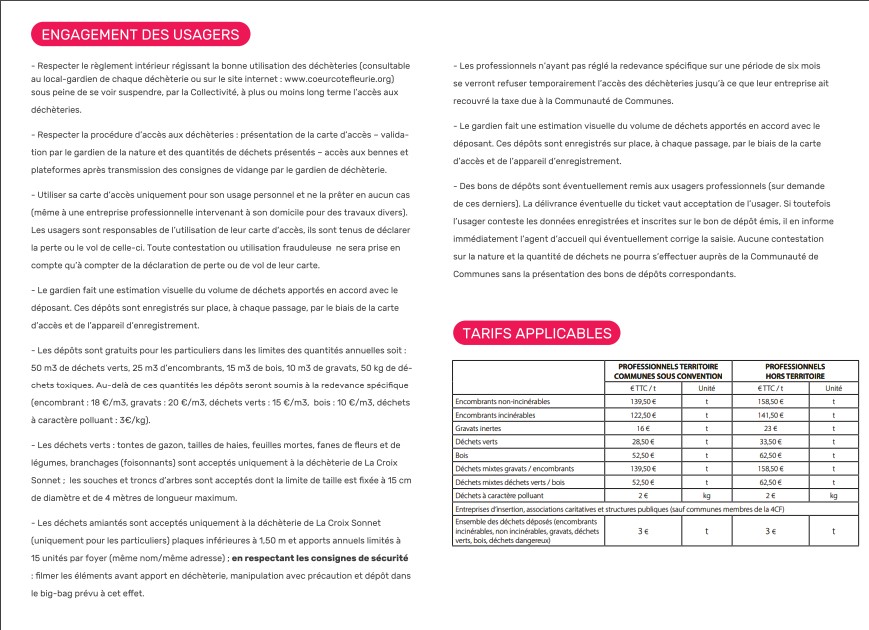 Tous les renseignements sur https://www.coeurcotefleurie.org/environnement/decheteries-pour-les-particuliers/
