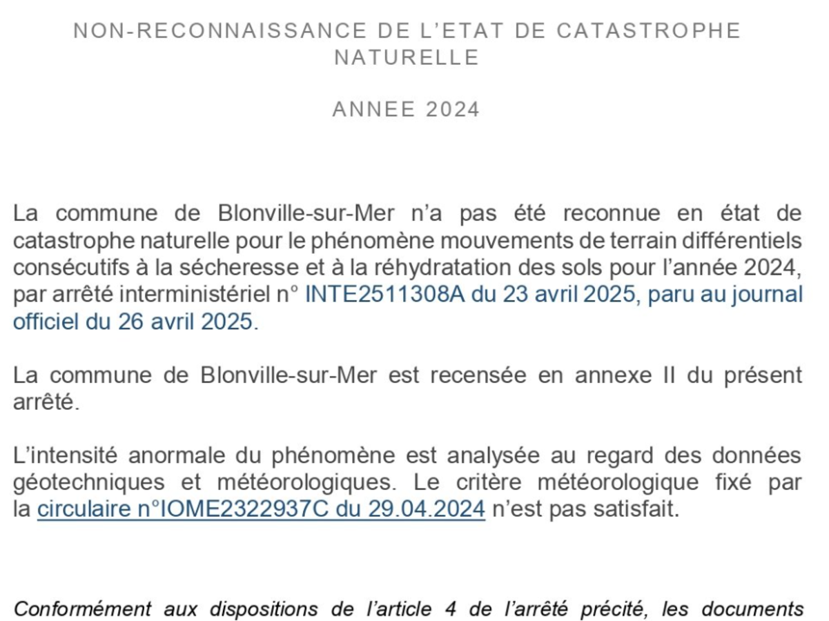 NON-RECONNAISSANCE DE L'ÉTAT DE CATASTROPHE NATURELLE 2024